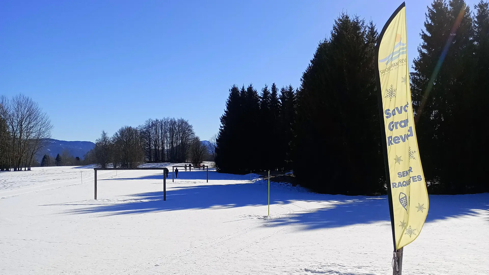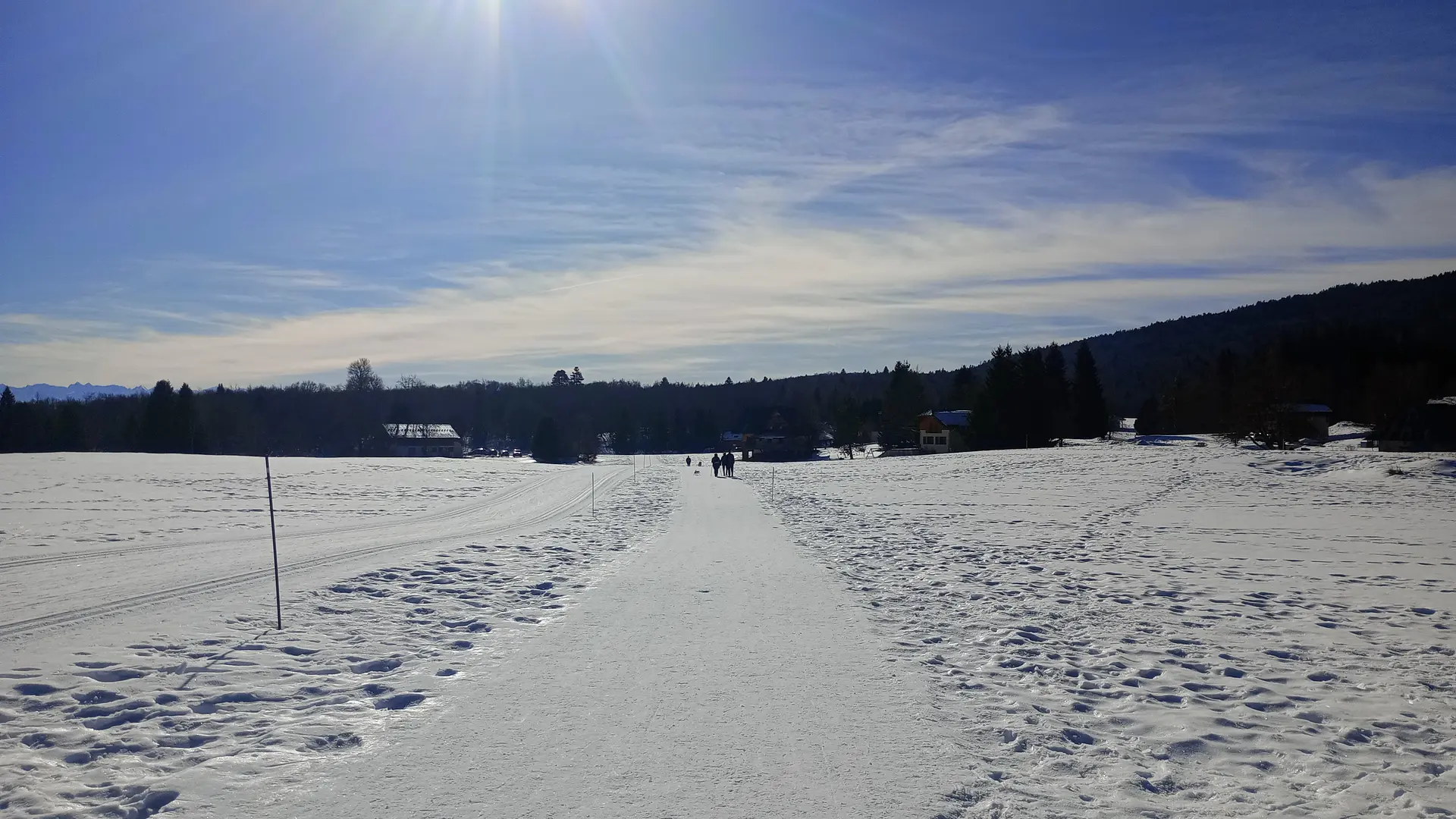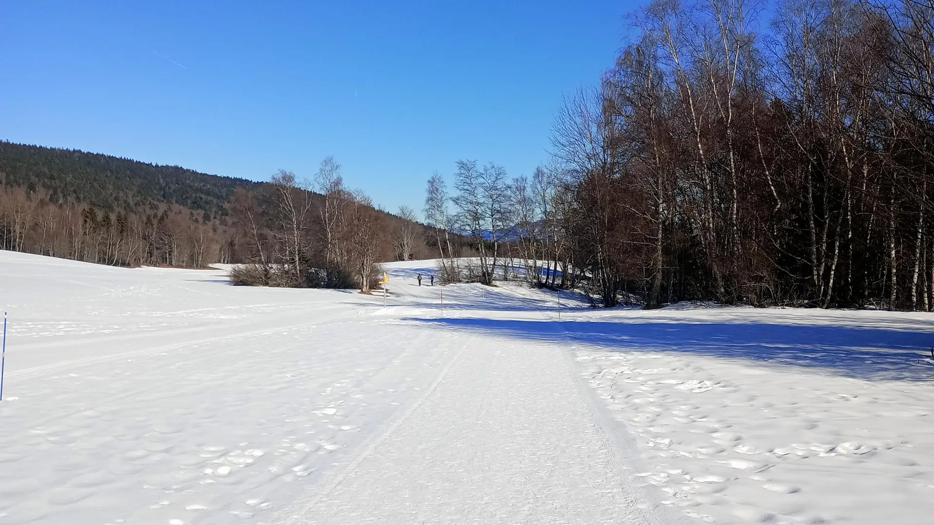 Le circuit longe les pistes de ski de fond (ne pas marcher sur les pistes de ski, bien rester sur le sentier piéton balisé avec des jalons/piquets jaunes).