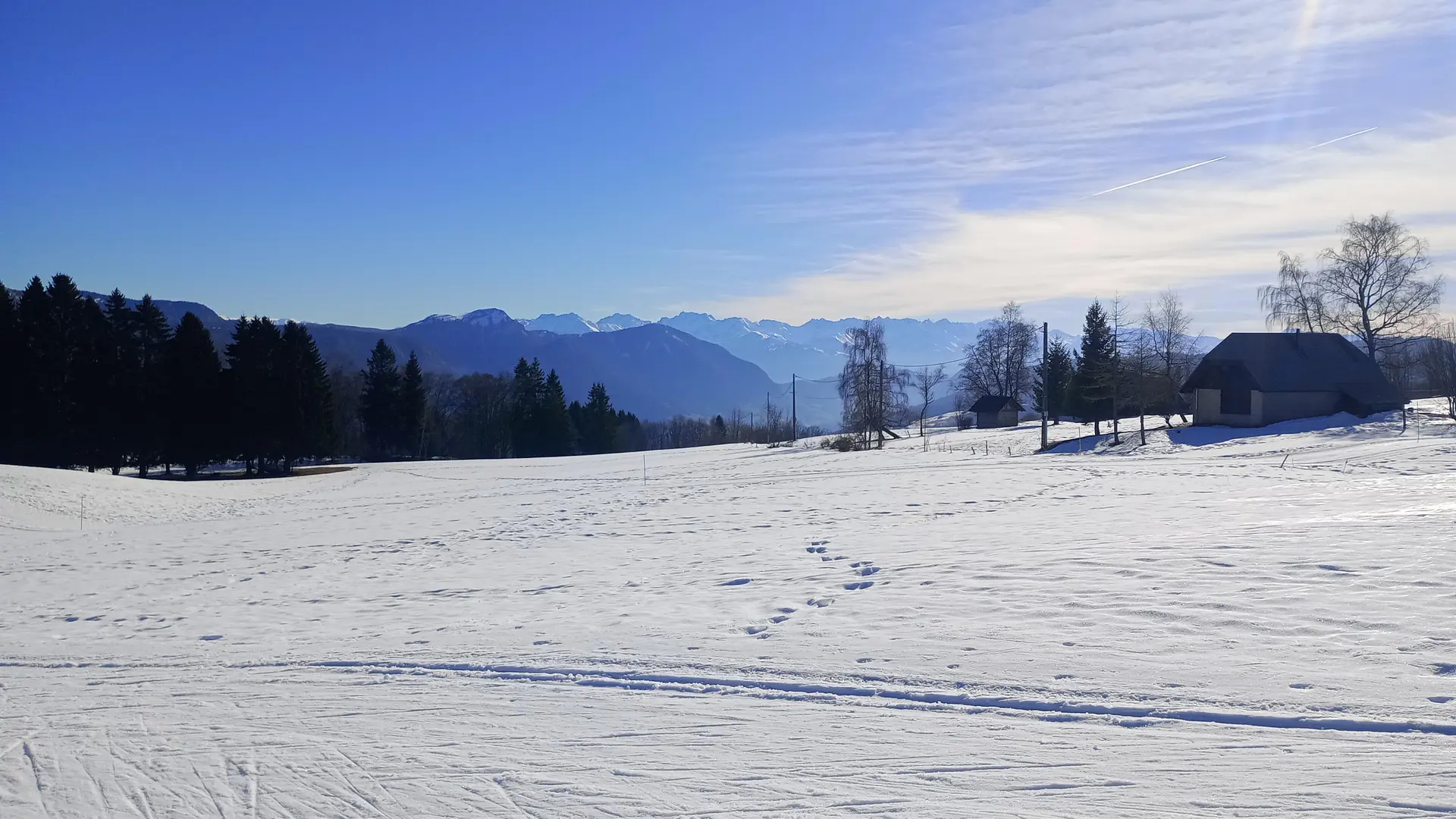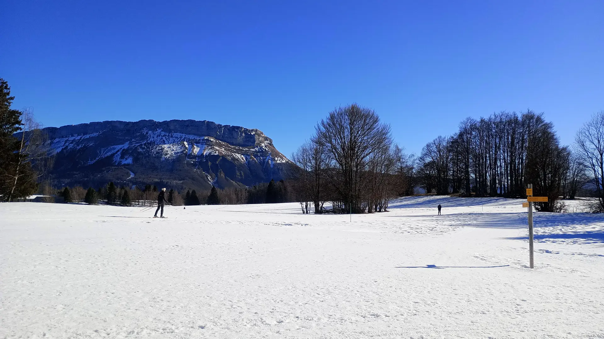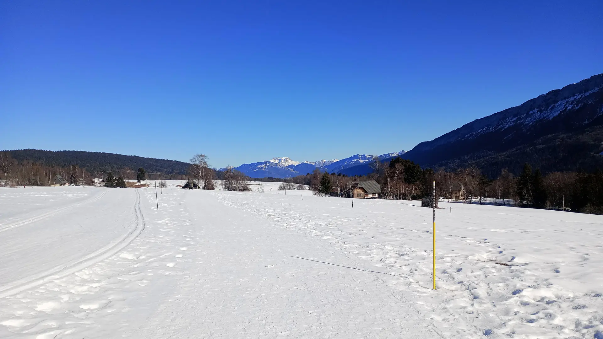 Le circuit longe les pistes de ski de fond (ne pas marcher sur les pistes de ski, bien rester sur le sentier piéton balisé avec des jalons/piquets jaunes).
