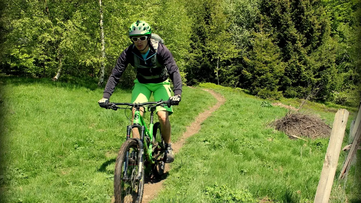 En débouchant sur la piste, prendre deux fois à gauche pour déboucher au foyer nordique du Revard-Crolles. La vigilance est de mise pour ne pas manquer les panneaux FFC qui emmènent sur une piste large très caillouteuse longeant la route au profil ascendant jusqu’à une nouvelle intersection. Prendre à gauche puis immédiatement à droite et poursuivre sur un sentier large mais assez pentu jusqu’à un replat où il est possible d’apercevoir l’imposant Margeriaz surplombant la vallée de la Leysse. L’itinéraire bifurque ensuite à droite et devient un magnifique single technique relativement plat et ludique au départ puis ensuite descendant. Il s’agit d’un secteur assez pentu ponctué de plusieurs virages sur un sol assez scabreux... soyez attentifs mais faites vous plaisir...