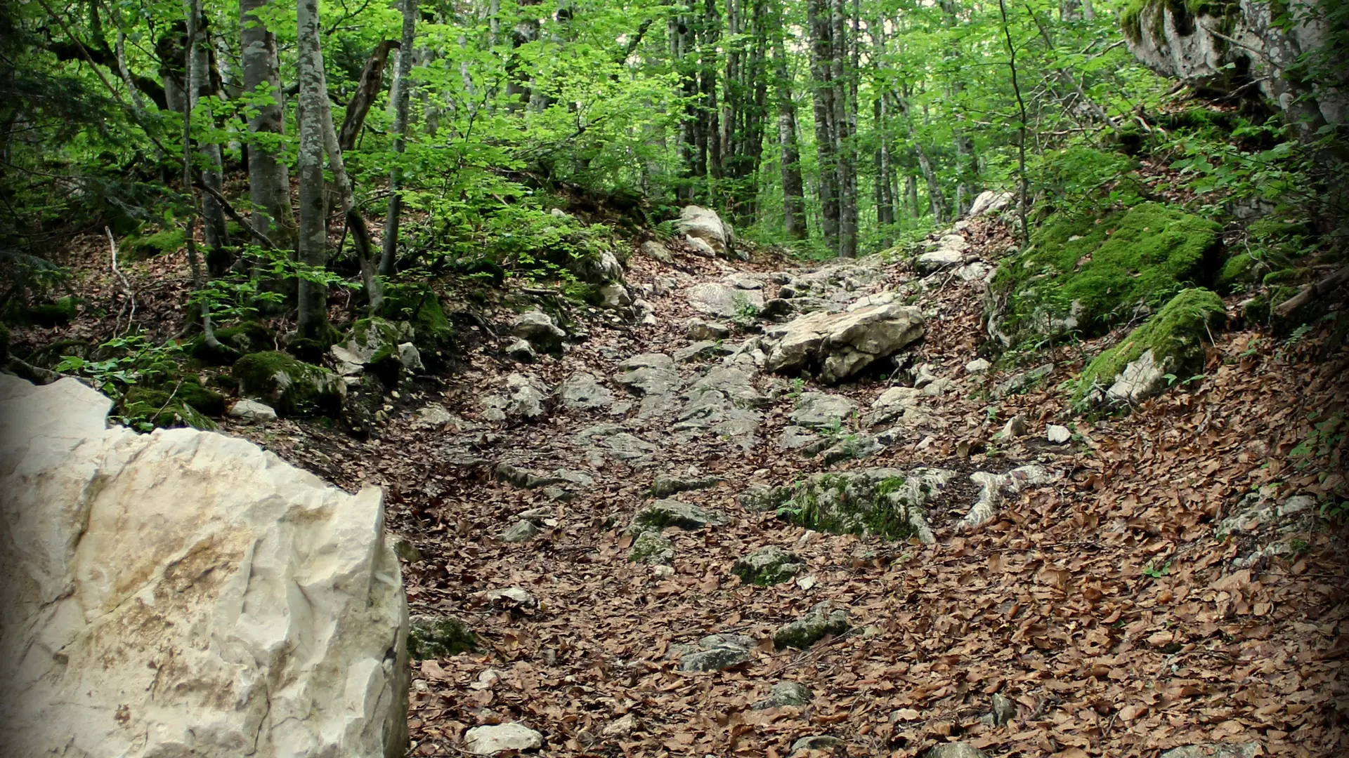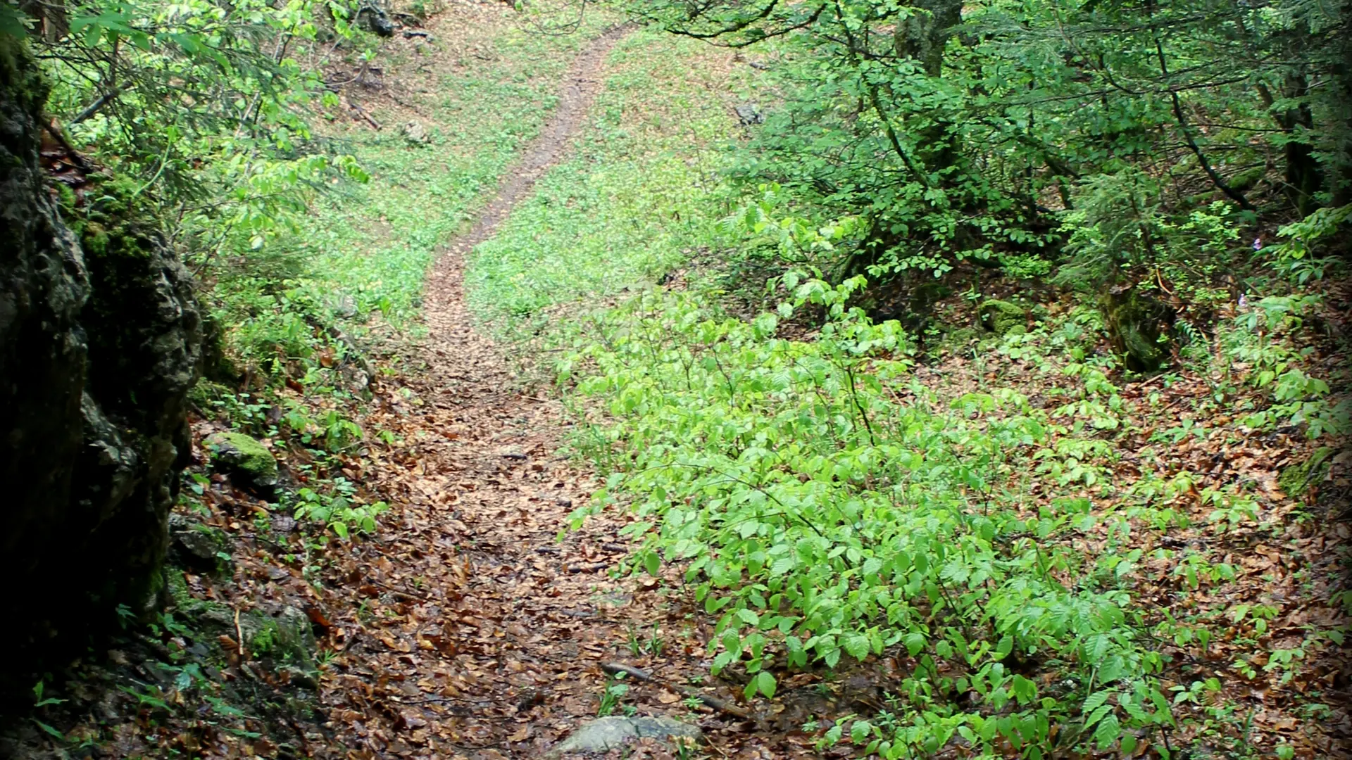 Tous les beaux singles ont une fin mais même le chemin très large à suivre ensuite en allant sur la droite prend des airs insolites dans cette forêt qui n'en finit pas de vous engouffrer. Rouler tranquillement sur un profil descendant pour déboucher sur le non moins insolite creux de l’Olette, immense dépression géologique. Emprunter ensuite une petite route goudronnée et descendre jusqu’au chalet de Larcoutier, vaste espace agréable où une pause s’impose et qui permet d'être à l'abri si besoin...