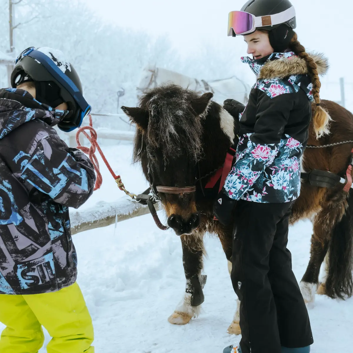 Les moniteurs du centre équestre, à ski, s'occupent de diriger votre poney. Vous n'avez plus qu'à profiter !