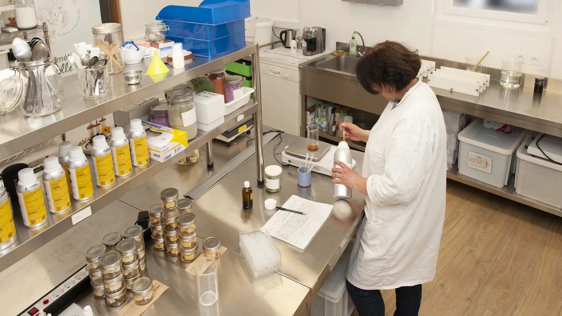 Vous trouverez toute une gamme de produits cosmétiques 100% naturelle et certifiée bio. Christine crée et fabrique l'ensemble des produits dans l'atelier qui se situe derrière la boutique. Cette gamme est également labelisée COSMEBIO.