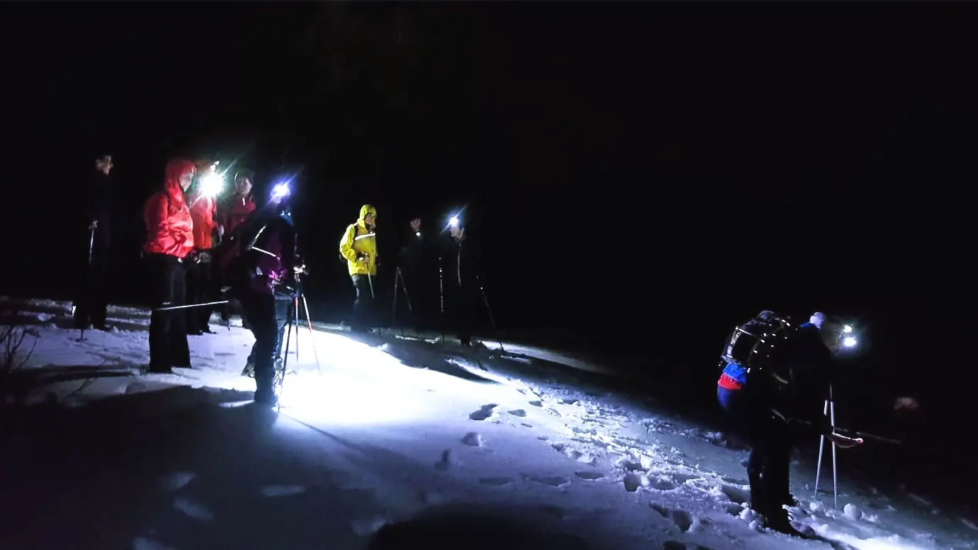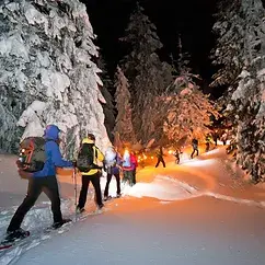 Accompagné de votre guide, profitez de votre randonnée raquette sous les étoiles pour une expérience unique dans le calme nocturne du «petit canada», surplombant les lueurs du lac du Bourget.