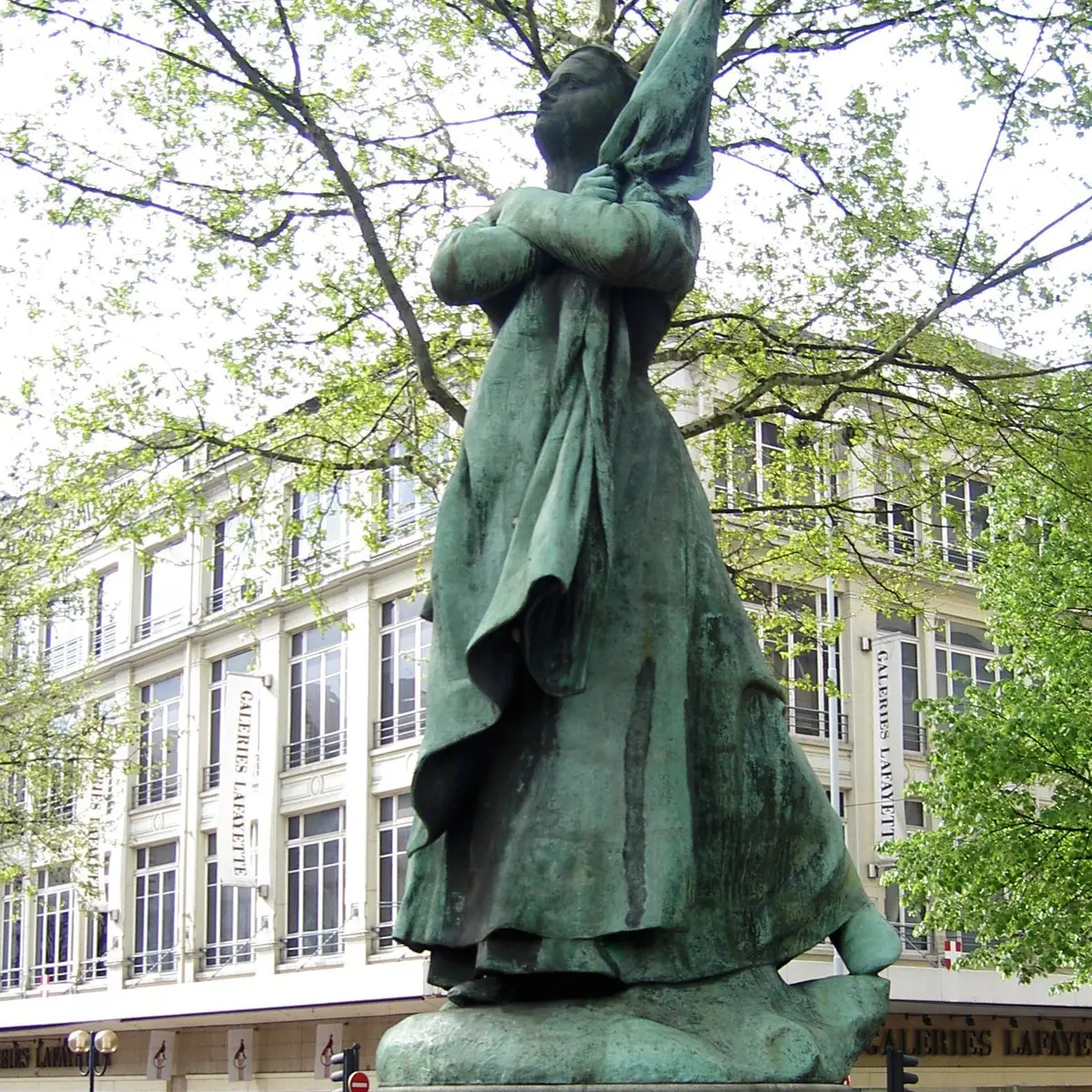 La Sasson - « grosse femme » en patois savoyard – est une statue en bronze qui commémore le centenaire de la réunion de la Savoie à la France en 1792. Alexandre Falguière, sculpteur renommé, en est l’auteur. Lors de l’inauguration, le 4 septembre 1892 en présence de Sadi Carnot, président de la République, le maire Antoine Perrier déclare : « Cette statue représente bien la Savoie avec sa grâce robuste. Elle presse sur son sein le symbole de cette patrie, l’immortel drapeau tricolore qui a fait le tour du monde, emportant dans ses plis les idées d’affranchissement, d’indépendance et d’égalité sociale ». Les Chambériens ont longtemps dénigré cette œuvre, dont la lourdeur leur semblait rédhibitoire. Pourtant, avec une schématisation et un alourdissement des formes, elle annonce avec quelques années d’avance l’œuvre de Maillol.
