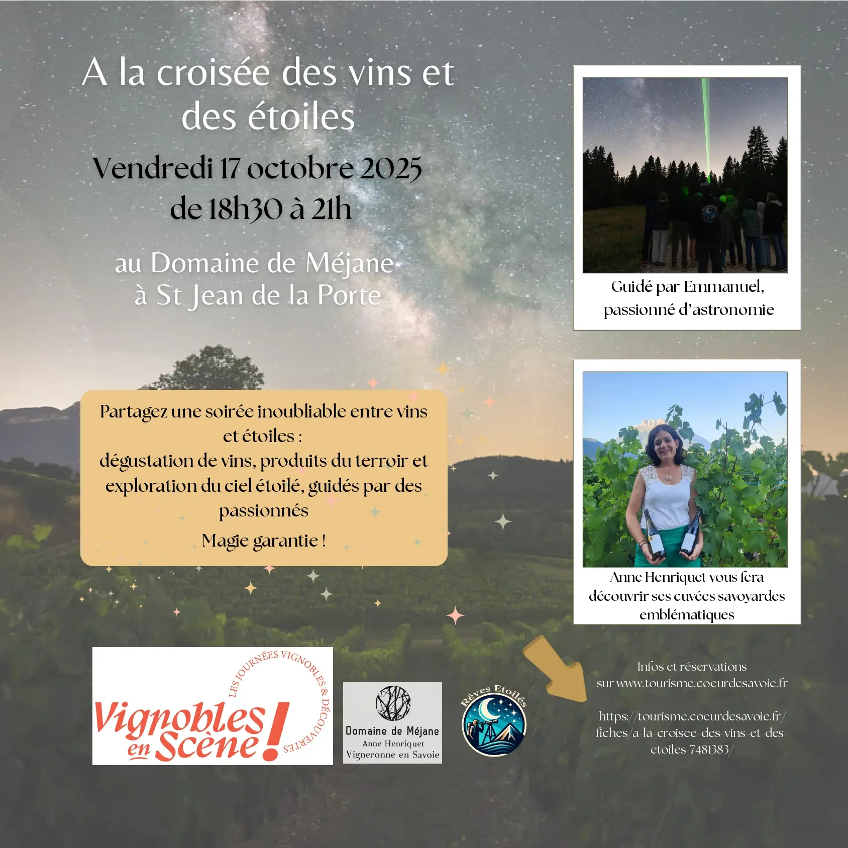 Vendredi à 18h30 : soirée astronomie et vin "A la croisée des vins et des étoiles" sur réservation avec E. Dutordoir, accompagnateur de montagne et passionné des étoiles.