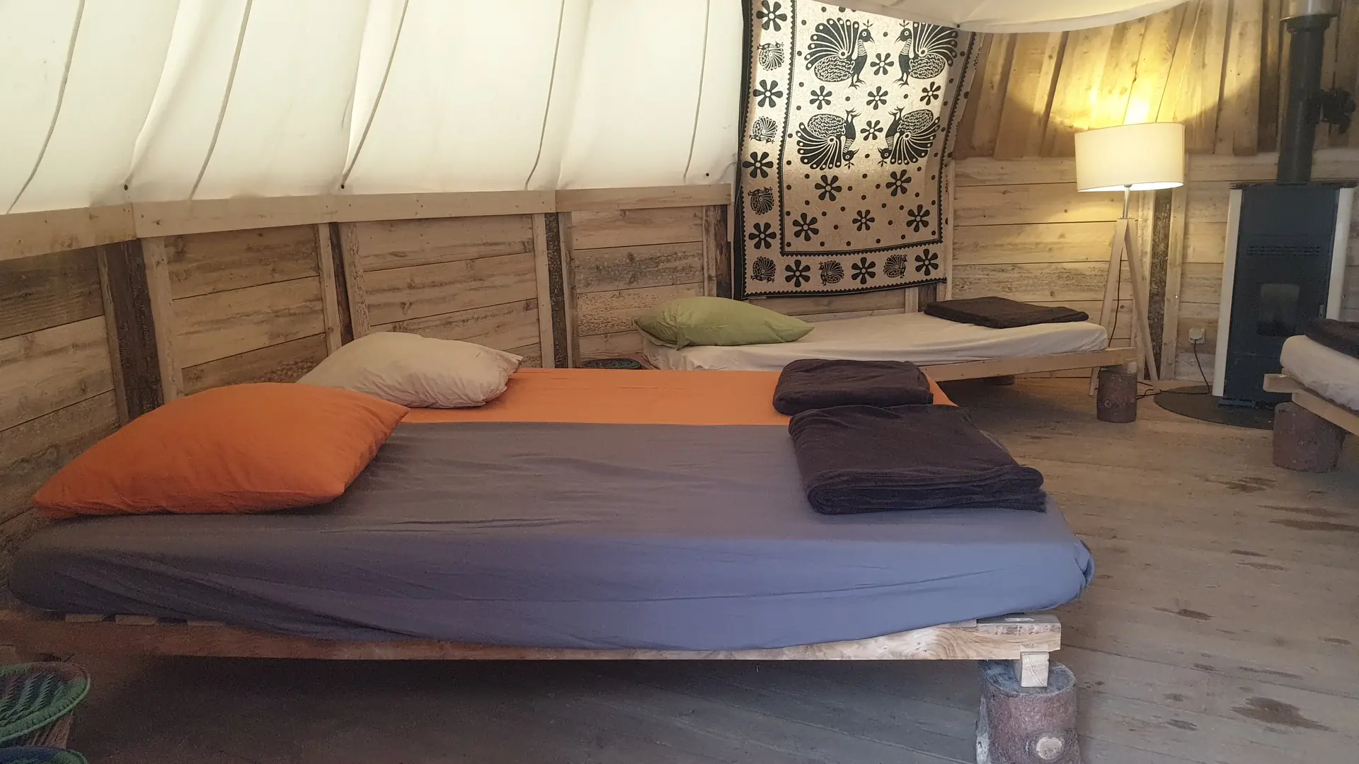Un gîte original composé de 33 couchages répartis dans 6 tipis de 4 à 7 couchages.