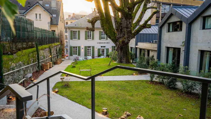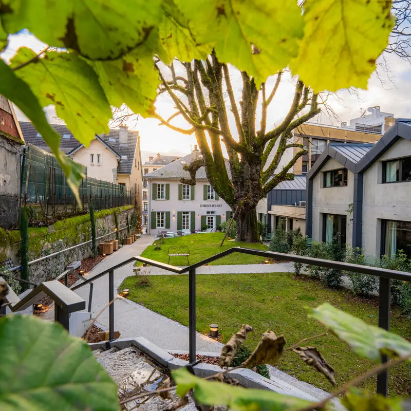 Derrière sa façade discrète, un jardin caché s’étire à l’ombre d’un châtaignier tricentenaire. 12 chambres dans l’âme d’une vieille maison de famille, 17 cabanes contemporaines ouvertes sur le calme. Ici, l’histoire s’apaise, le quotidien ralentit.