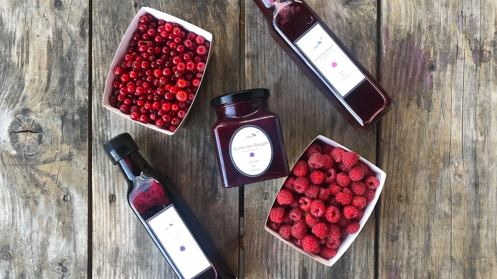 Derrière Graine des Bauges, se trouve une productrice de petits fruits et plantes médicinales habitant au Noyer et cultivant différentes baies (framboise, mûre, cassis , groseille ,fraise) et plantes dans un jardin verger. Elle pratique également la cueillette sauvage.