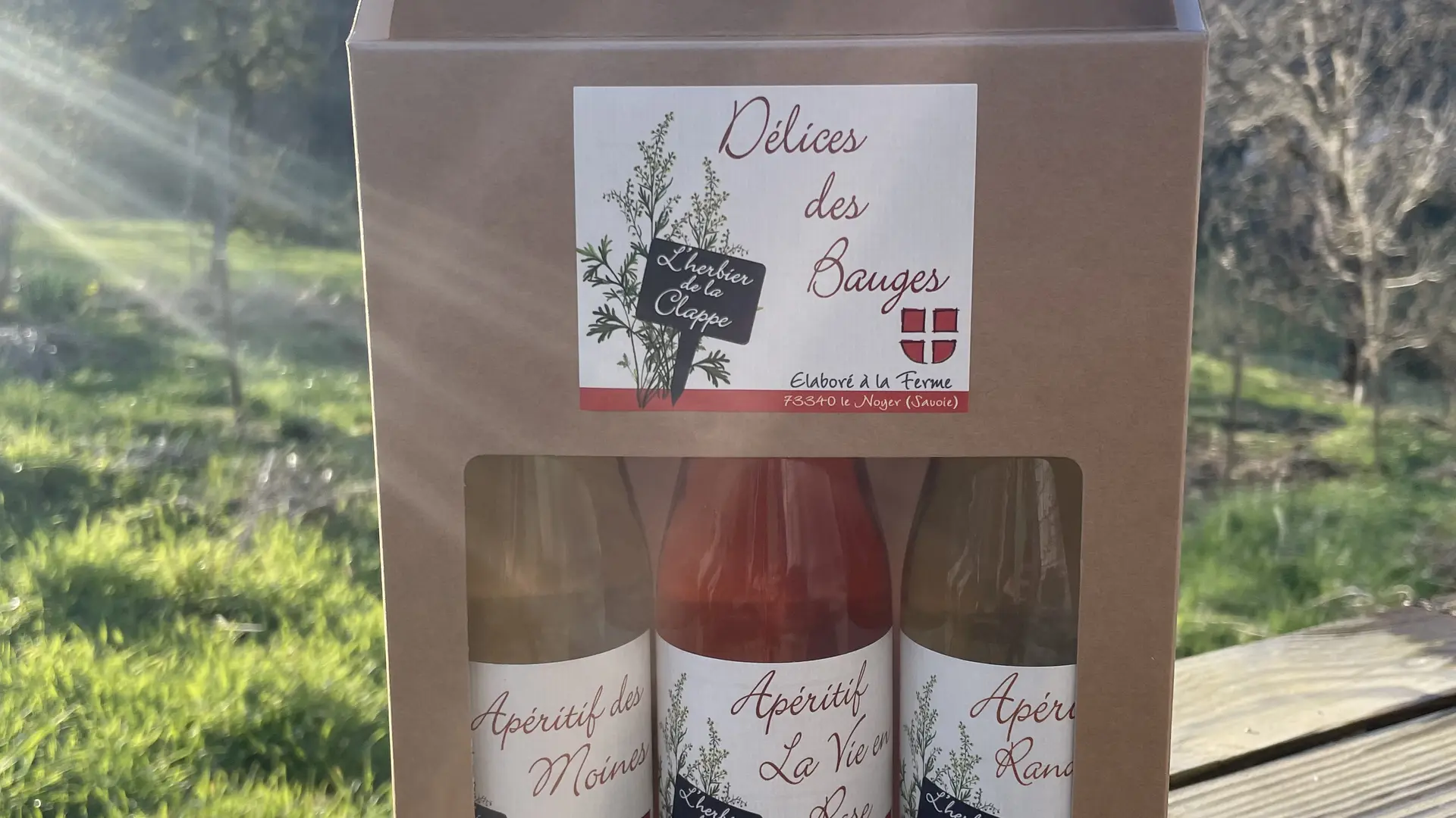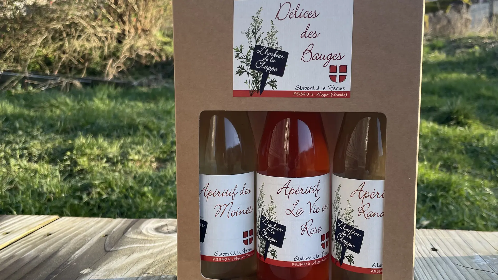 Avec les plantes cultivées ou cueillies dans le Massif des Bauges, elle fabrique des apéritifs de plantes à 16° "Les Apéritifs de L'Herbier de la Clappe". Ils sont élaborés par macération à froid dans du vin blanc de Savoie. Le cépage du vin blanc est de la Jacquère Bio provenant de collègues viticulteurs de Chignin au pied du Massif des Bauges. 10 parfums d'apéritifs vous sont proposés.
