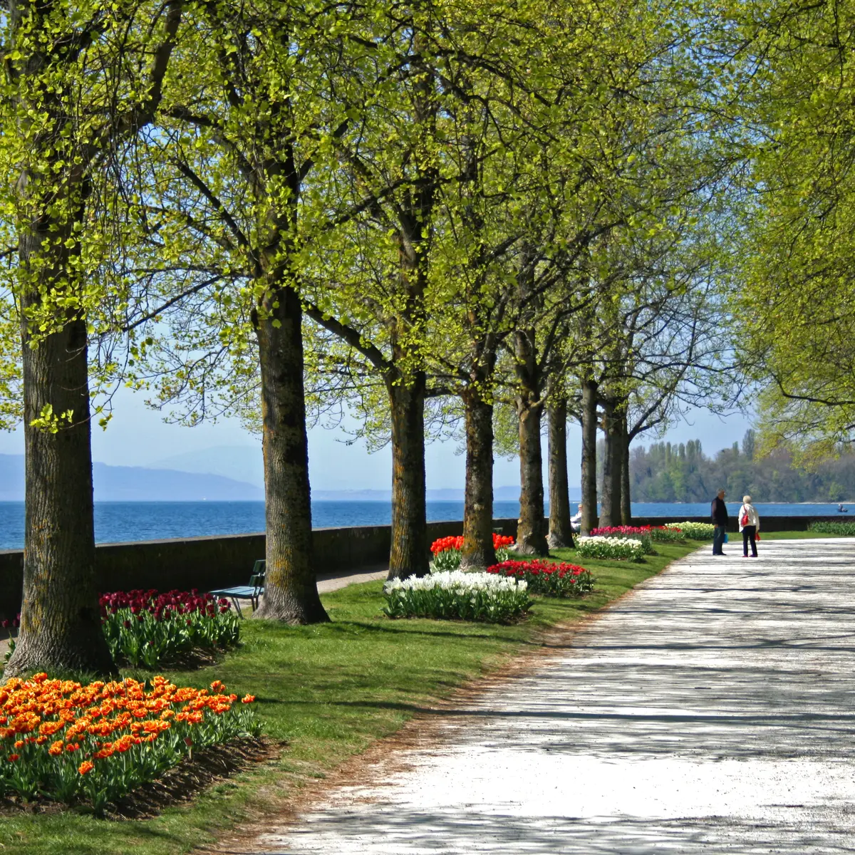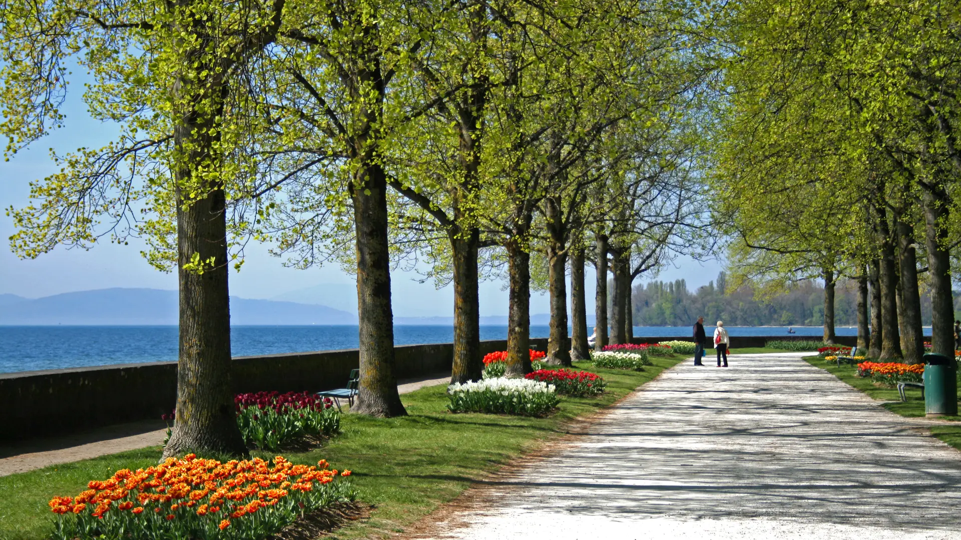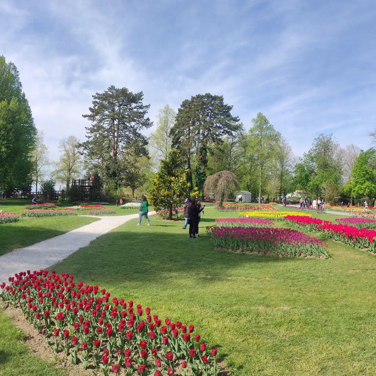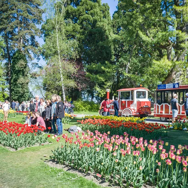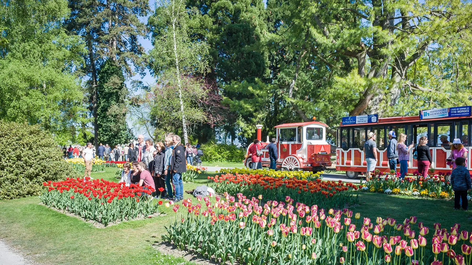 La Fête de la Tulipe a lieu au bord du Lac Léman. Un rendez-vous très attendu dans un site exceptionnel face aux Alpes.