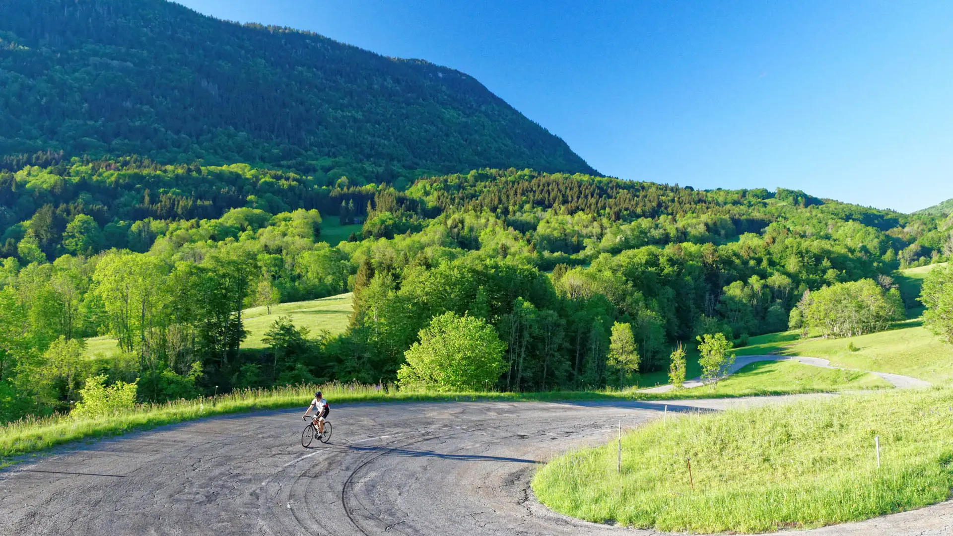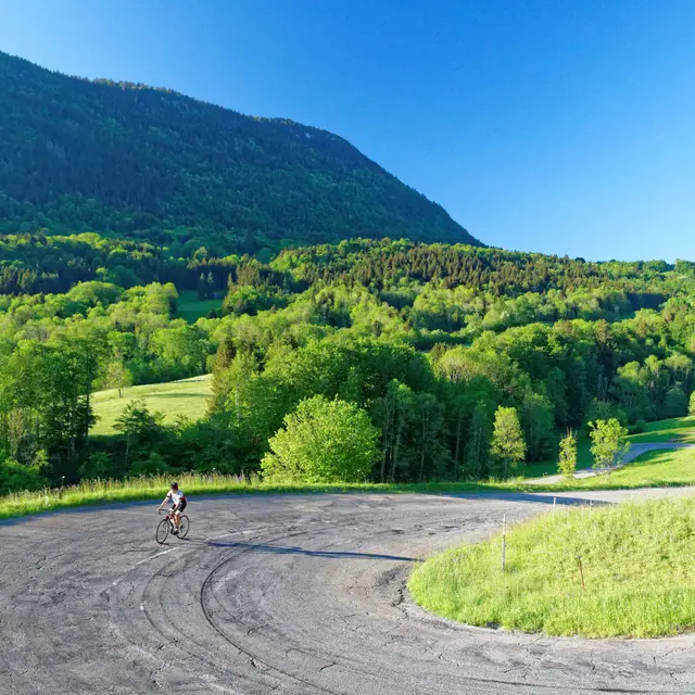 Depuis Chambéry, l’ascension du col des Prés par lequel débute ce circuit est rude, mais récompensée ensuite par une magnifique plongée au cœur du Géoparc des Bauges dont vous ressortirez par le col du Frêne, avec vue sur le mont Blanc en prime. En rentrant par la combe de Savoie, vous évoluez au milieu des vignobles de Savoie, autre fleuron gastronomique de notre territoire.
