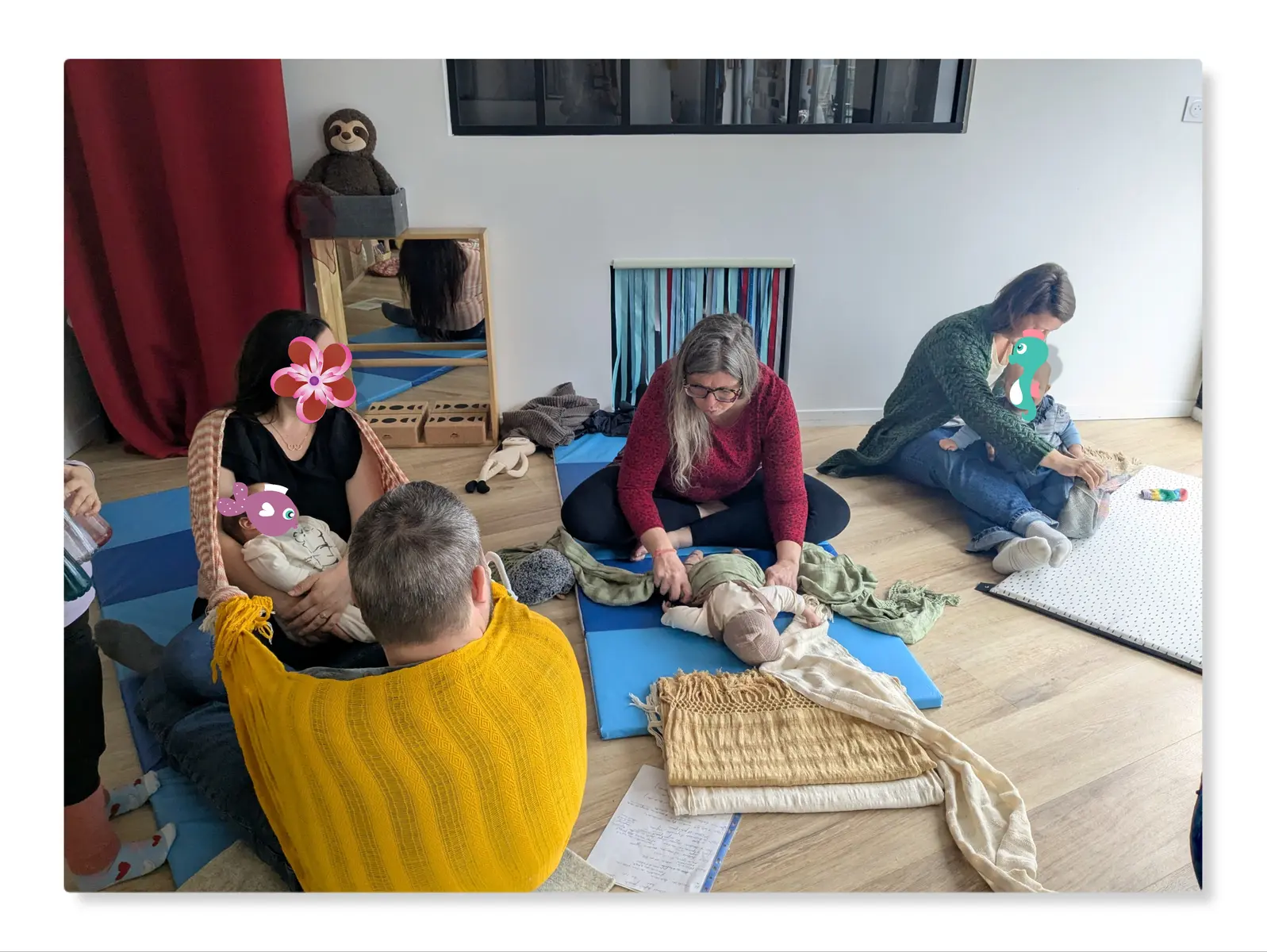 Atelier adapté pour tous les enfants à besoins spécifiques au sein de la MAM Inclusive Des Merveilles Au Jardin en collaboration avec Antje Lewerenz Doula à Chambéry.