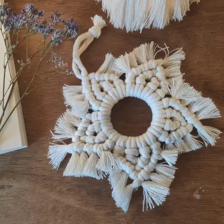 Ensuite, une fois les nœuds maîtrisés, vous réaliserez votre création. Vous vous émerveillerez en voyant votre création prendre forme nœud après nœud. Et vous étonnerez de la patience que vous développez et de l'état méditatif dans lequel le macramé peut vous plonger.