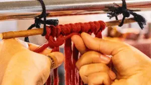 Vous débuterez par une phase d'apprentissage pendant laquelle vous vous entraînerez à réaliser différents nœuds. Vous découvrirez la sensation du coton qui glisse dans vos mains. Vous expérimenterez pour trouver votre meilleure manière de faire.