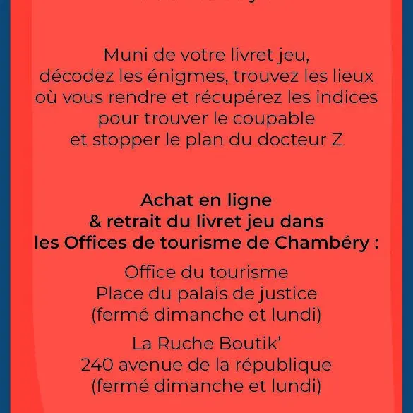 Livret de Jeux à acheter sur le site internet Joue-là comme Indiana, puis à retirer dans les offices de tourisme de Chambéry (Place du Palais de Justice et La Ruche Boutik' au Carré Curial).