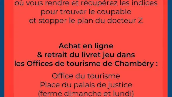 Le Conseil Supérieur des Scientifiques regroupe les plus grands savants du monde. Mais le docteur Z n’a pas été accepté dans ce Conseil. Il compte bien prouver qu’il est pourtant le meilleur des scientifiques. Pour cela, il a préparé un gaz qui transformera tous ceux qui le respirent en zombies. Il a ensuite hypnotisé quelqu’un qui a placé la bombe contenant ce gaz au sein de la ville de Chambéry et qui a entré son année de naissance comme code de désactivation. Et cette personne n’a bien sûr aucun souvenir d’avoir posée cette bombe! Après de nombreuses investigations, le détective Théo Moss a réussi à réduire à huit le nombre de suspects. A vous de l’aider à trouver parmi eux, qui a posé la bombe et obtenir ainsi le code pour la désamorcer.