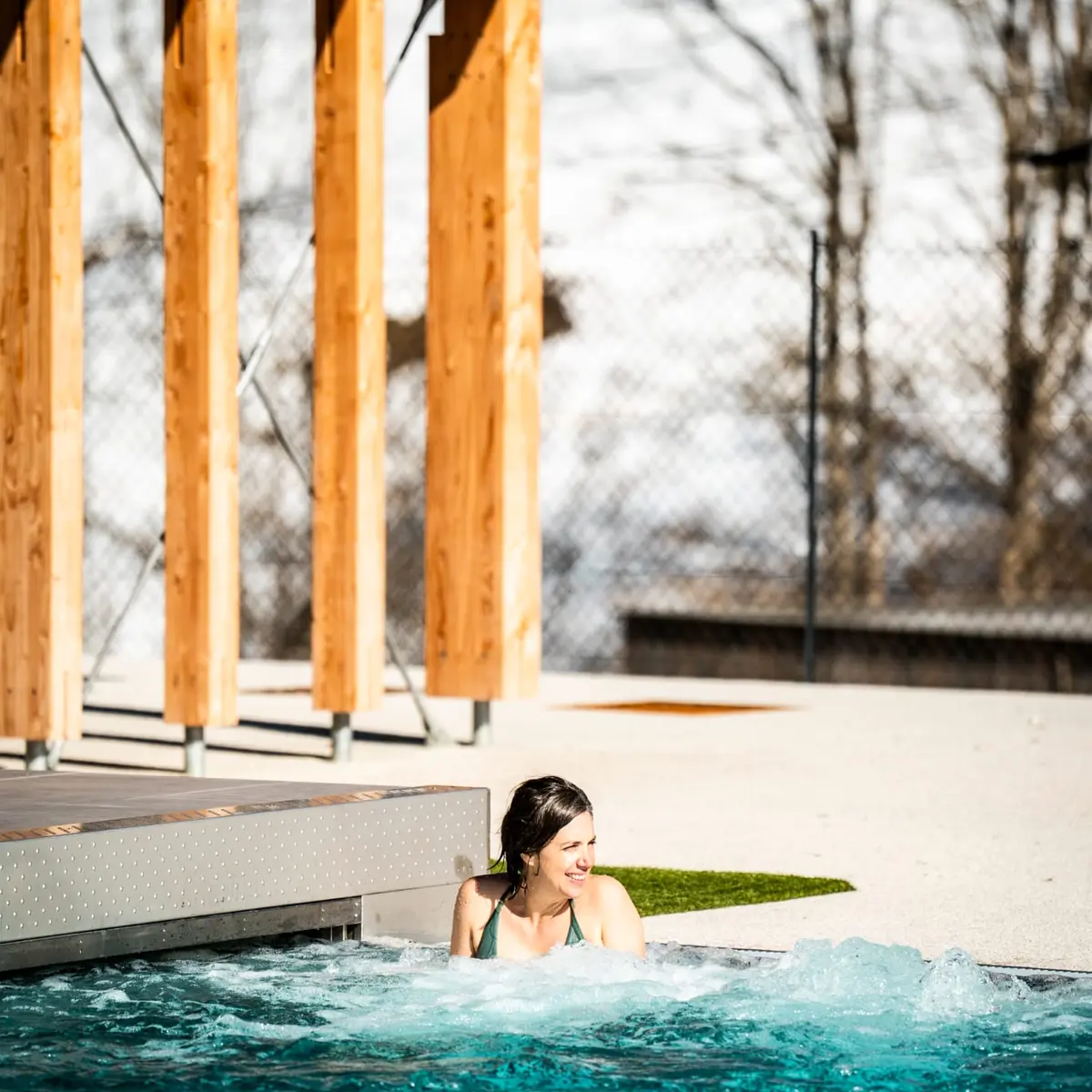 Découvrez la magie de la baignade nordique ! Bassins chauffés en plein-air, le tout accessible par un sas couvert et tempéré ! Un moment de détente et bien-être, dans une eau chaude sous l'air frais des montagnes.