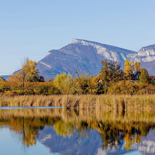 Envie de pédaler tranquillement, cheveux au vent et feuilles sous les roues ? Empruntez les petites routes au sud de Chambéry pour rejoindre le lac Saint- André, lové au pied du Mont Granier. Lʼautomne y offre des reflets dorés à la surface de lʼeau et une atmosphère paisible, presque méditative.