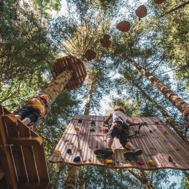 Lʼautomne, cʼest aussi la saison idéale pour prendre un peu de hauteur… littéralement ! Deux parcs aériens vous accueillent dans un décor flamboyant :
