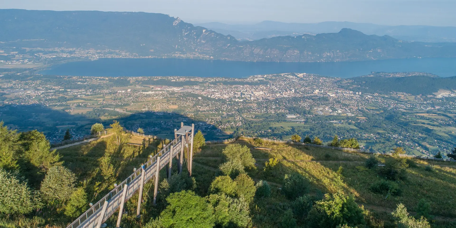 Situé à 1 562 mètres d’altitude, à l’extrémité ouest du massif des Bauges, le belvédère du Revard et ses 3 passerelles offrent un panorama majestueux sur le lac du Bourget, Aix-les-Bains, Chambéry et la Dent du Chat.